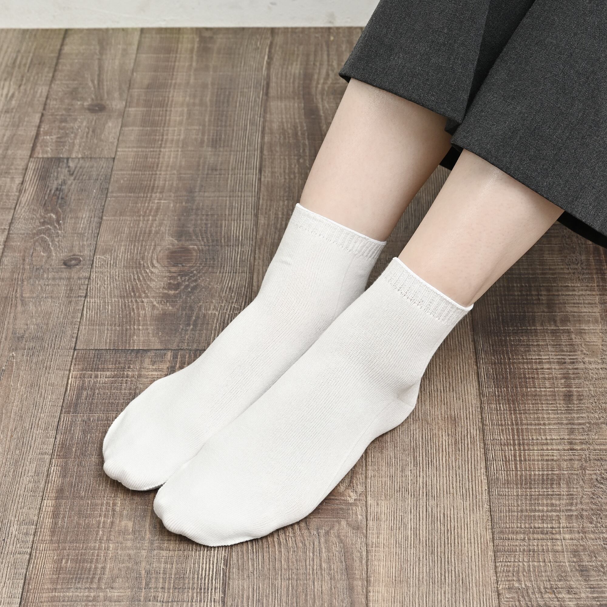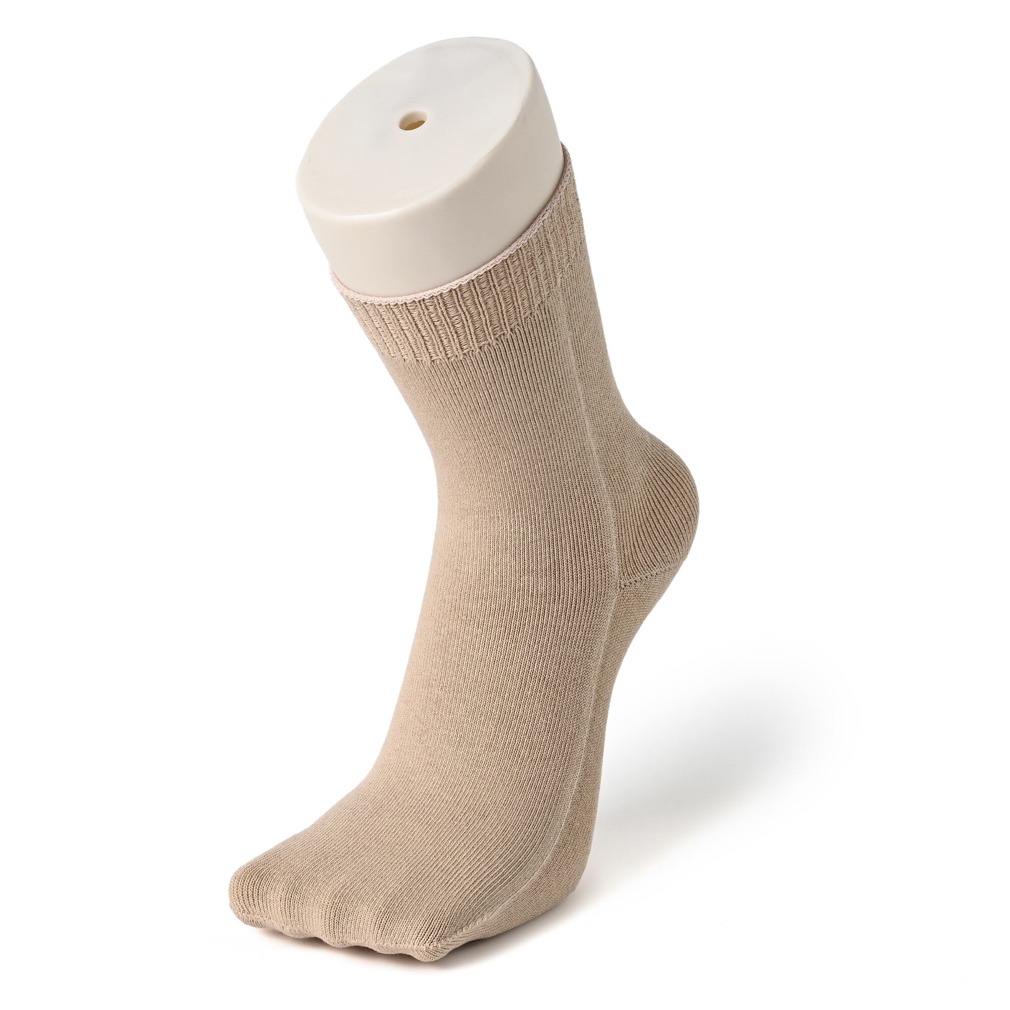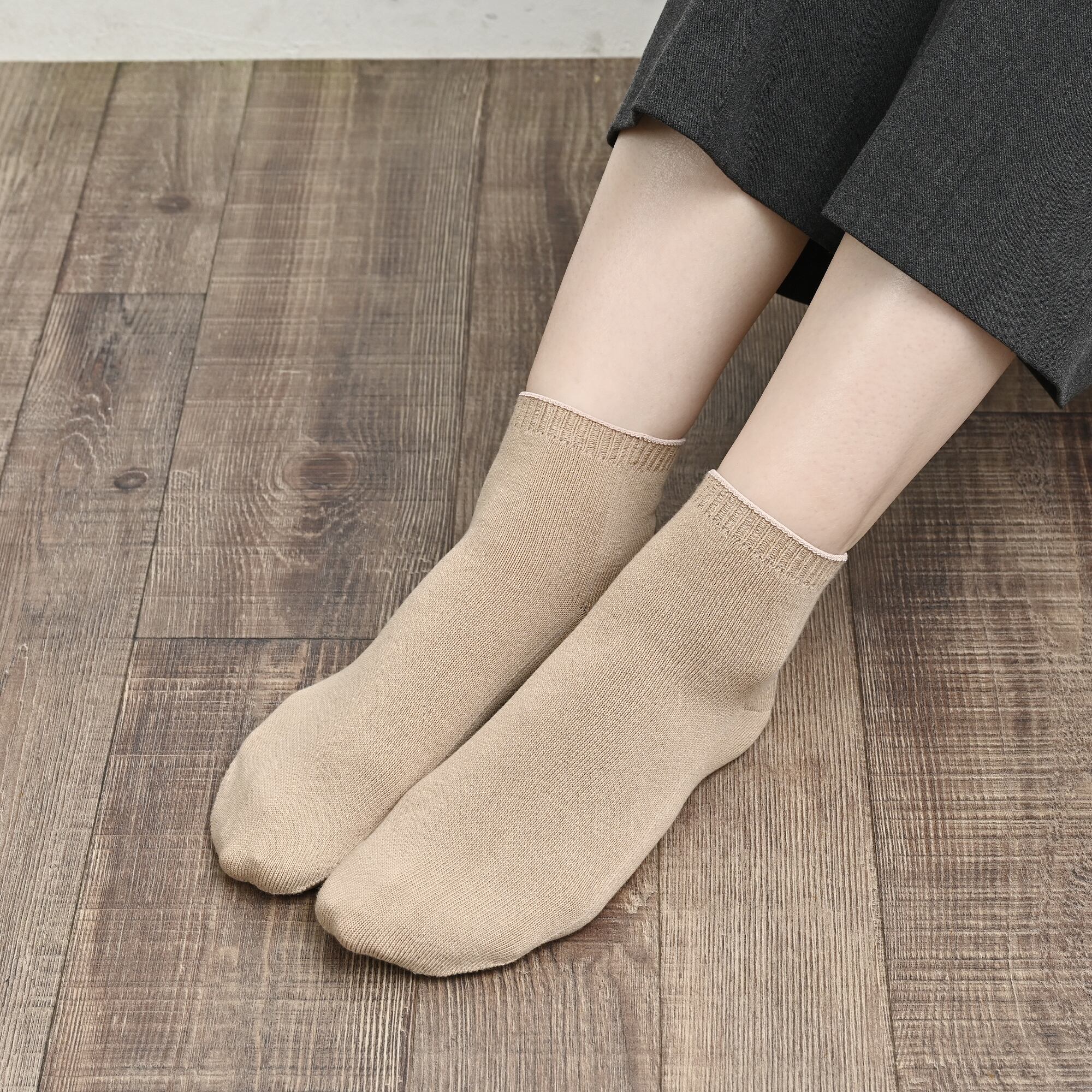 心地よくフィットする「先丸靴下(オーガニックコットン)」。この靴下は、日常のちょっとした快適さを追求した設計になっています。お肌に優しいオーガニックコットンを使用しており、敏感肌の方でも安心してお使いいただけます。また、履き口にもこだわっており、ミシンを使わず、伸縮性に優れた素材が優しく足をサポートし、長時間の着用でも疲れにくい工夫が施されています。